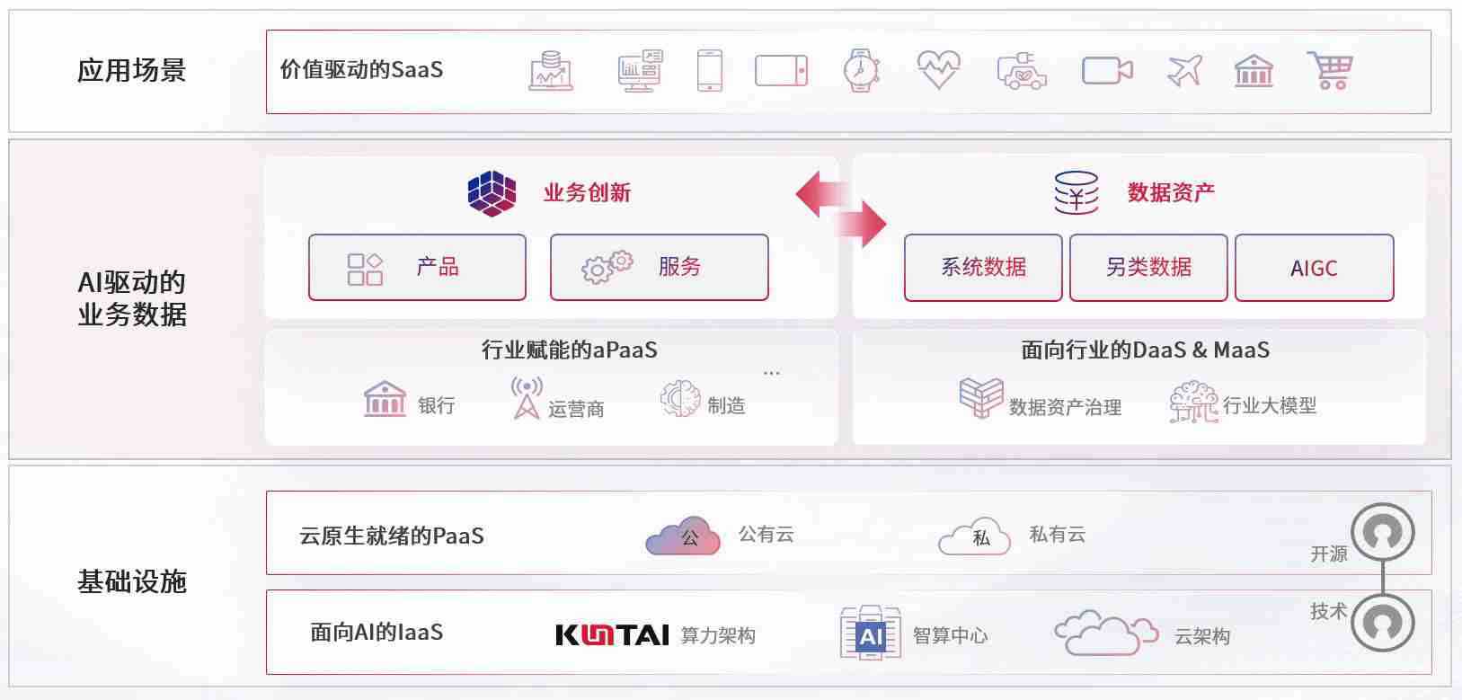 数字时代,,,,围绕企业数字化转型的关键要素,,恒盛娱乐数码开创性的提出数云融合战略和技术体系框架,,着力在云原生、、数字原生、、AI原生和信创产业上架构产品和服务能力,,,,为处在不同数字化转型阶段的快消零售、、、、汽车、、、、金融、、、、医疗、、、政企、、、教育、、、运营商等行业客户提供泛在的敏捷IT能力和融合的数据驱动能力,,,,构建跨界融合创新的数字业务场景和新业务模式,,,助力企业级客户建立面向未来的核心能力和竞争优势,,,全面推动社会的数字化、、、智能化转型升级。。。